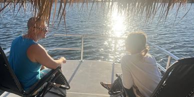 If you have more than 6 passengers and need another boat we can accommodate we have a sister boat we do rides with just call us to book. If you have your own idea for a tiki ride, contact us to discuss options. Birthdays graduation parties, night rides, bachelor/bachelorette parties, corporate event gatherings are just a few suggestions. Use your imagination, and we will discuss ! Evening and night time rides are awesome because the boat is equipped with LED lighting all around, above, and below! CALL TO DISCUSS